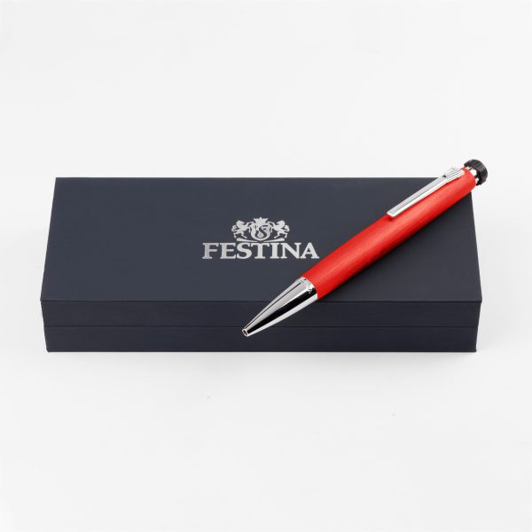 Blending a red brushed texture with soft crisp chrome metal accents, the Chronobike ballpoint pen, with its unique ogivoïdal shape and on brand elements, combines a sporty with a luxurious feel.