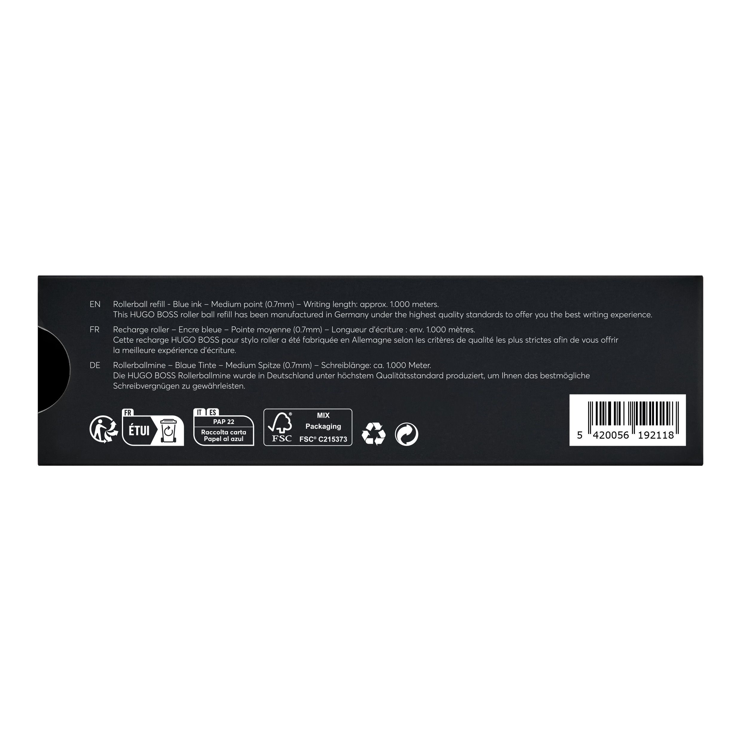 The refills are compatible with all HUGO BOSS pens. The tip size is M ( 0,7 mm ). The ink colour is printed on the packaging and on the base of each refill.
