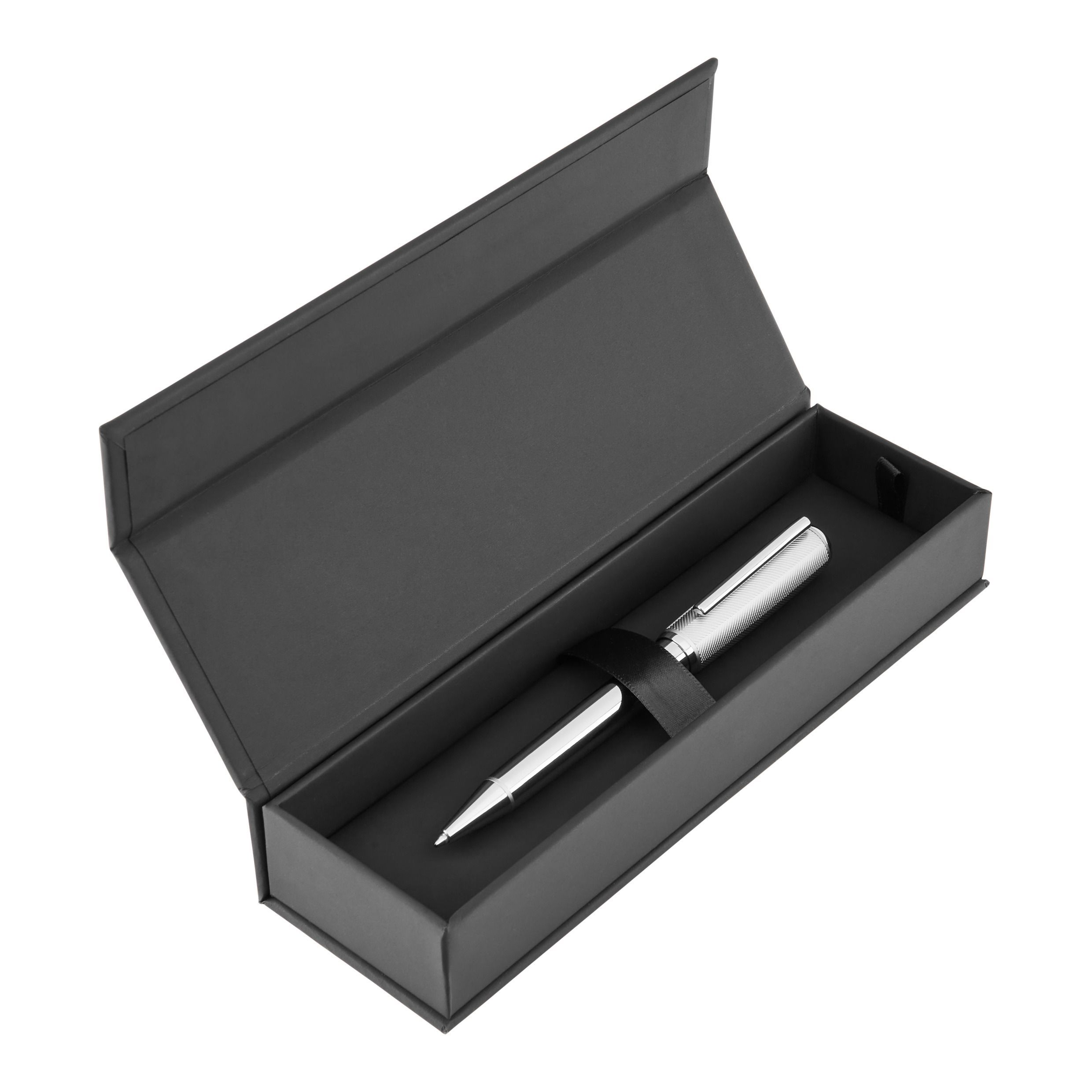 The Pace collection is crafted on a dynamic and harmonious frame. This latest addition to the writing instrument series features a sleek matte chevron pattern on the cap, beautifully contrasted by the clean, metal-plated lower barrel and an unexpected logo placement. It is a refined piece that captures the essence of subtle luxury.